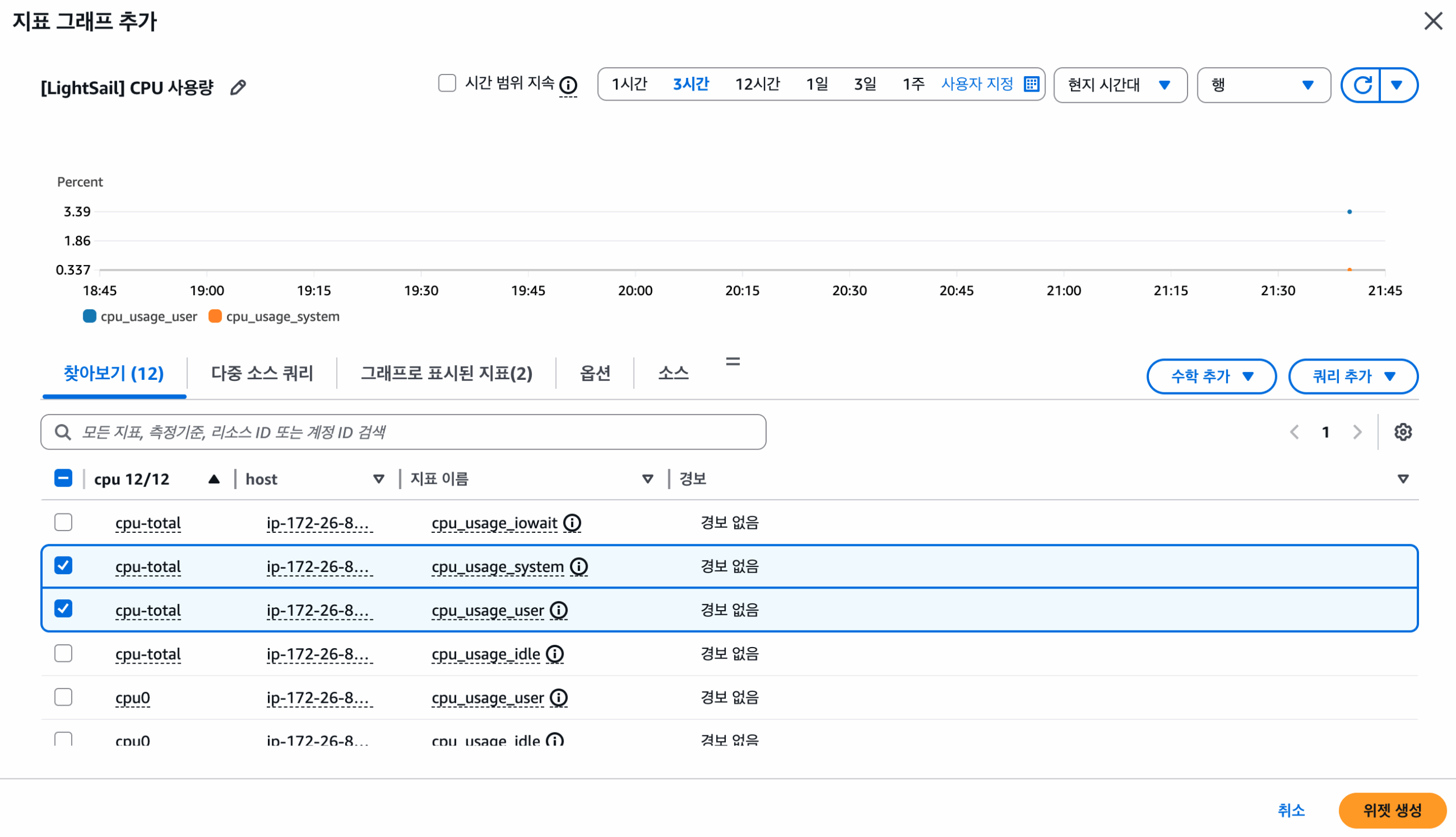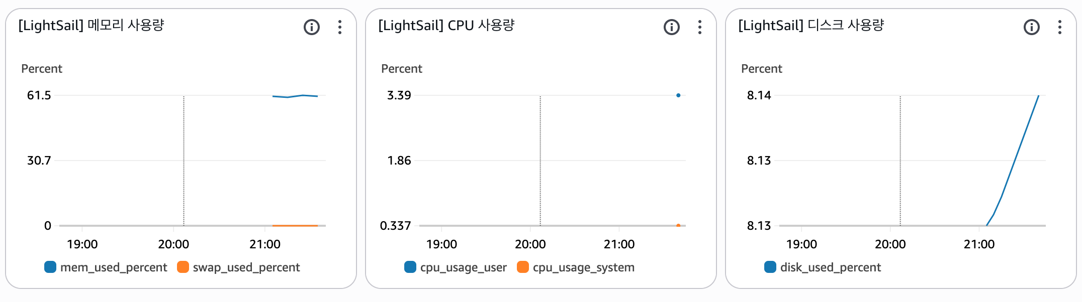 최근 데이터베이스 관련 장애를 겪었고, Lightsail Database 를 AWS RDS 로 마이그레이션하며 몇 가지 수치를 모아놓은 Cloudwatch 대시보드를 구성하였습니다. 하는 김에, Lightsail 인스턴스도 대시보드를 구성하여 여유 RAM 수치, CPU 사용량 등을 볼 수 있다면 모니터링에 유용할 것이라는 생각이 들었습니다. 어떤 문제가 발생하기 전, 대시보드를 구성해 봅시다.